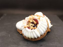 De plus, comme pour toutes nos créations, nous utilisons des purées de fruits de qualité et sans arôme artificiel. Chez Le Petit Biscuitier, nous valorisons les produits locaux. Notre farine vient des Hautes-Alpes (sans additifs, blé français), nos œufs de Puget Ville (plein air), notre crème de marron de Collobrières et nos figues de Solliès.
